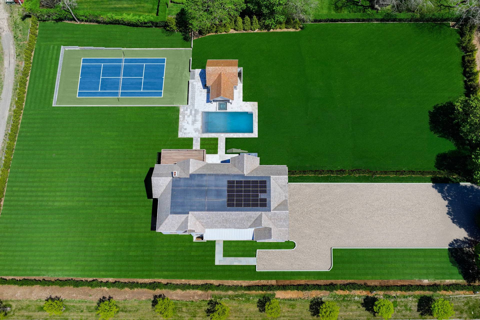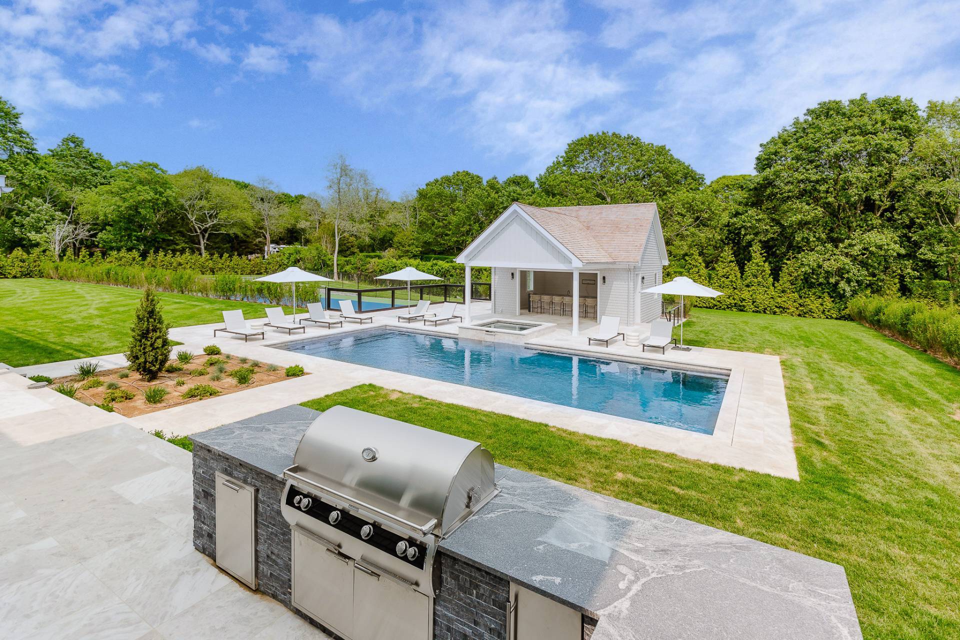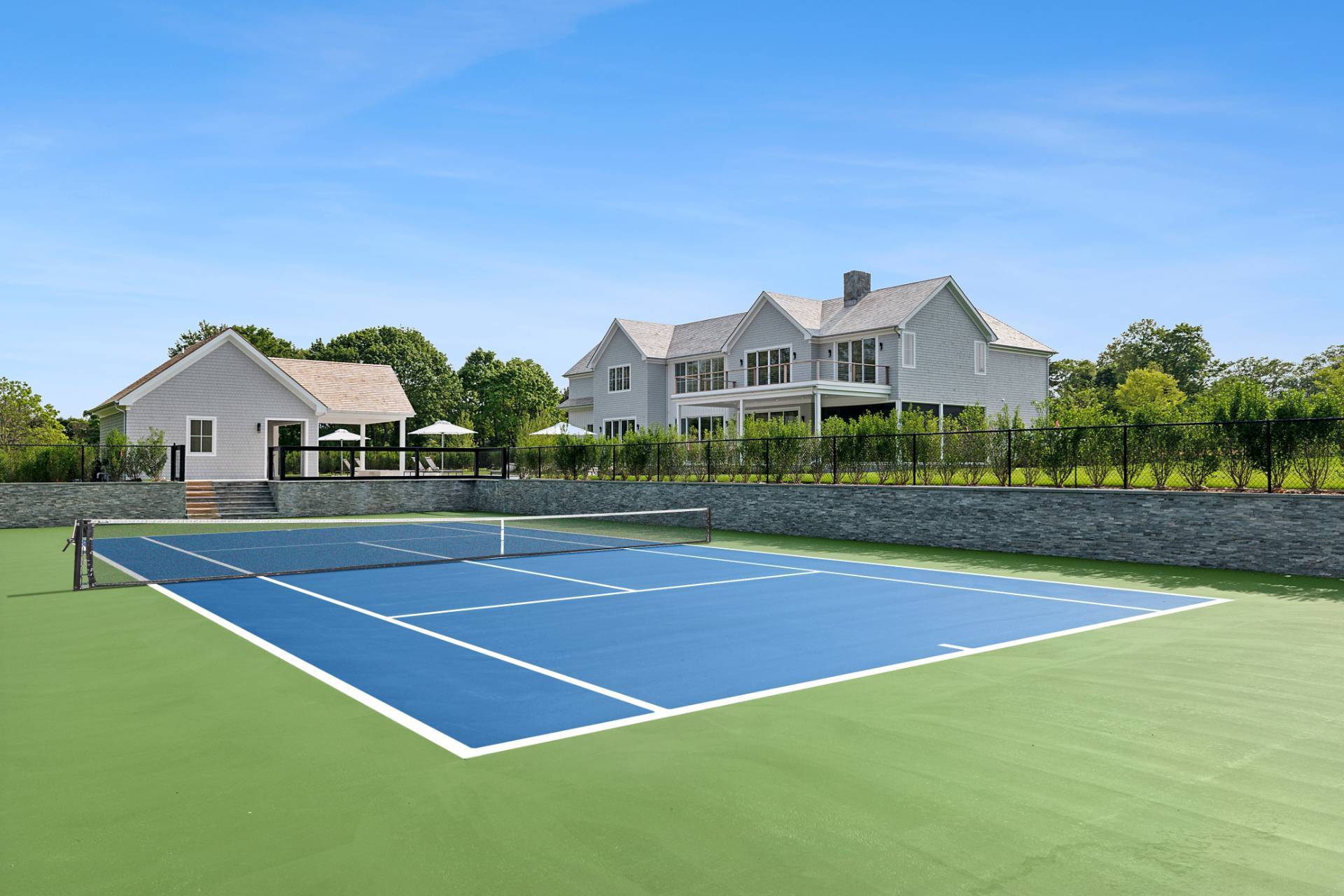 NEW DRIVEWAY ENTRANCE BEING CHANGED TO COME OFF HAMPTON PARK ROAD THROUGH THE NEW GATED COMMUNITY. EXISTING DRIVEWAY TO NORTH SEA MECOX WILL BE CLOSED AND LANDSCAPED.100% COMPLETE! New Construction, Furnished, Pool House & Tennis Move right in for summer 2025! Just completed and designer furnished- Stunning Southampton new construction with bright and open skies beam natural light across every inch of the expansive 2.3 acre property with large pool, pool house, and tennis. Inside and out, everything is elevated with premium materials and artisan craftsmanship in the design and construction to create a portrait of chic contemporary living in the Hamptons. Arrive to a grand, double-height entry foyer with clear sightlines throughout the home and grounds beyond. The great room is anchored by gorgeous wood-burning fireplace and encompasses a plush living room and inviting sitting room, each with patio egress. This is an entertainer's dream home, equipped with two dining rooms and a bright eat-in kitchen with an expansive center island, custom cabinets, and premium appliances. Accessed by oversized French doors throughout the first floor, always prioritizing indoor-outdoor lifestyle and filling the interior spaces with brilliant light and unobscured views of the resort-like grounds. Upstairs, the primary suite is its own luxurious escape with cathedral ceilings, large home office with wet bar, spa-like bath with dual vanity, a freestanding soaking tub and an enormous marble shower with bench seating, and a boutique walk-in closet - all with private balcony overlooking the expansive property. Three additional ensuite guest rooms and a convenient laundry room complete this level. Five additional guest rooms, including a first-floor jr. primary are located on each level and ready to accommodate guests and loved ones. Accessed by glass-lined staircase, the fully finished lower level is the peak of functional luxury with tall ceilings, full sauna & steam rooms, wine room, a mirrored gym, home theater with wet bar, and versatile recreation/living space. The expansive pool is warmed by the sun with all-day light, overlooked by a fully loaded outdoor kitchen, covered dining patio, and full outdoor living room. A bright and beachy pool house adds privacy and peaceful gathering space as well as a full bathroom and room to store your pool toys. Past the pool and surrounding porcelain patio with sun lounge, your own sunken tennis courts. Beyond, an expansive, fully cleared lawn and grounds are idea for lawn games and entertaining - all fully fenced and lined with privacy-affording perimeter hedges. Your forever home in the Hamptons is equipped with every amenity needed to enjoy effortless luxury living year-round, including laundry on each level, attached 3-car garage, and elevator. Enviable location in the heart of the Hamptons close to equestrian, vineyards, and convenient access to Water Mill and Southampton Village, plus world-famous ocean and bay beaches all within reach.