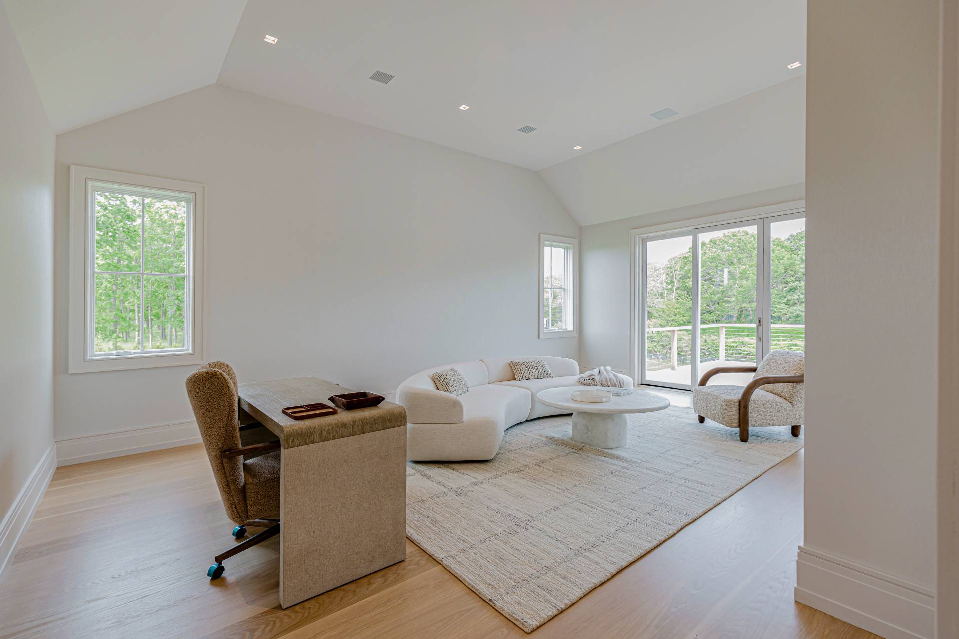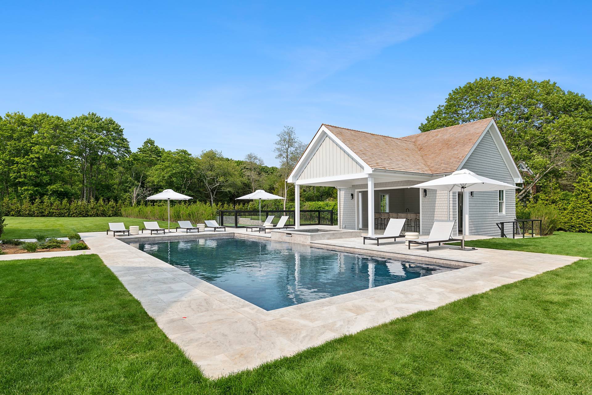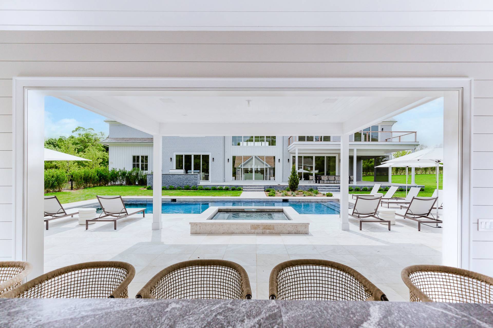NEW DRIVEWAY ENTRANCE BEING CHANGED TO COME OFF HAMPTON PARK ROAD THROUGH THE NEW GATED COMMUNITY. EXISTING DRIVEWAY TO NORTH SEA MECOX WILL BE CLOSED AND LANDSCAPED.100% COMPLETE! New Construction, Furnished, Pool House & Tennis Move right in for summer 2025! Just completed and designer furnished- Stunning Southampton new construction with bright and open skies beam natural light across every inch of the expansive 2.3 acre property with large pool, pool house, and tennis. Inside and out, everything is elevated with premium materials and artisan craftsmanship in the design and construction to create a portrait of chic contemporary living in the Hamptons. Arrive to a grand, double-height entry foyer with clear sightlines throughout the home and grounds beyond. The great room is anchored by gorgeous wood-burning fireplace and encompasses a plush living room and inviting sitting room, each with patio egress. This is an entertainer's dream home, equipped with two dining rooms and a bright eat-in kitchen with an expansive center island, custom cabinets, and premium appliances. Accessed by oversized French doors throughout the first floor, always prioritizing indoor-outdoor lifestyle and filling the interior spaces with brilliant light and unobscured views of the resort-like grounds. Upstairs, the primary suite is its own luxurious escape with cathedral ceilings, large home office with wet bar, spa-like bath with dual vanity, a freestanding soaking tub and an enormous marble shower with bench seating, and a boutique walk-in closet - all with private balcony overlooking the expansive property. Three additional ensuite guest rooms and a convenient laundry room complete this level. Five additional guest rooms, including a first-floor jr. primary are located on each level and ready to accommodate guests and loved ones. Accessed by glass-lined staircase, the fully finished lower level is the peak of functional luxury with tall ceilings, full sauna & steam rooms, wine room, a mirrored gym, home theater with wet bar, and versatile recreation/living space. The expansive pool is warmed by the sun with all-day light, overlooked by a fully loaded outdoor kitchen, covered dining patio, and full outdoor living room. A bright and beachy pool house adds privacy and peaceful gathering space as well as a full bathroom and room to store your pool toys. Past the pool and surrounding porcelain patio with sun lounge, your own sunken tennis courts. Beyond, an expansive, fully cleared lawn and grounds are idea for lawn games and entertaining - all fully fenced and lined with privacy-affording perimeter hedges. Your forever home in the Hamptons is equipped with every amenity needed to enjoy effortless luxury living year-round, including laundry on each level, attached 3-car garage, and elevator. Enviable location in the heart of the Hamptons close to equestrian, vineyards, and convenient access to Water Mill and Southampton Village, plus world-famous ocean and bay beaches all within reach.